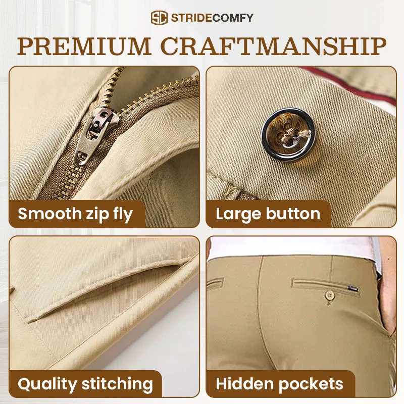 StrideComfy - Men's Stretch Khaki Pants with Elastic Waistband